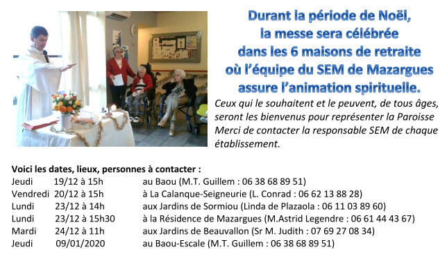 L'équipe du SEM organise des visites à domicile, dans les maisons de retraite, ainsi que des célébrations.
